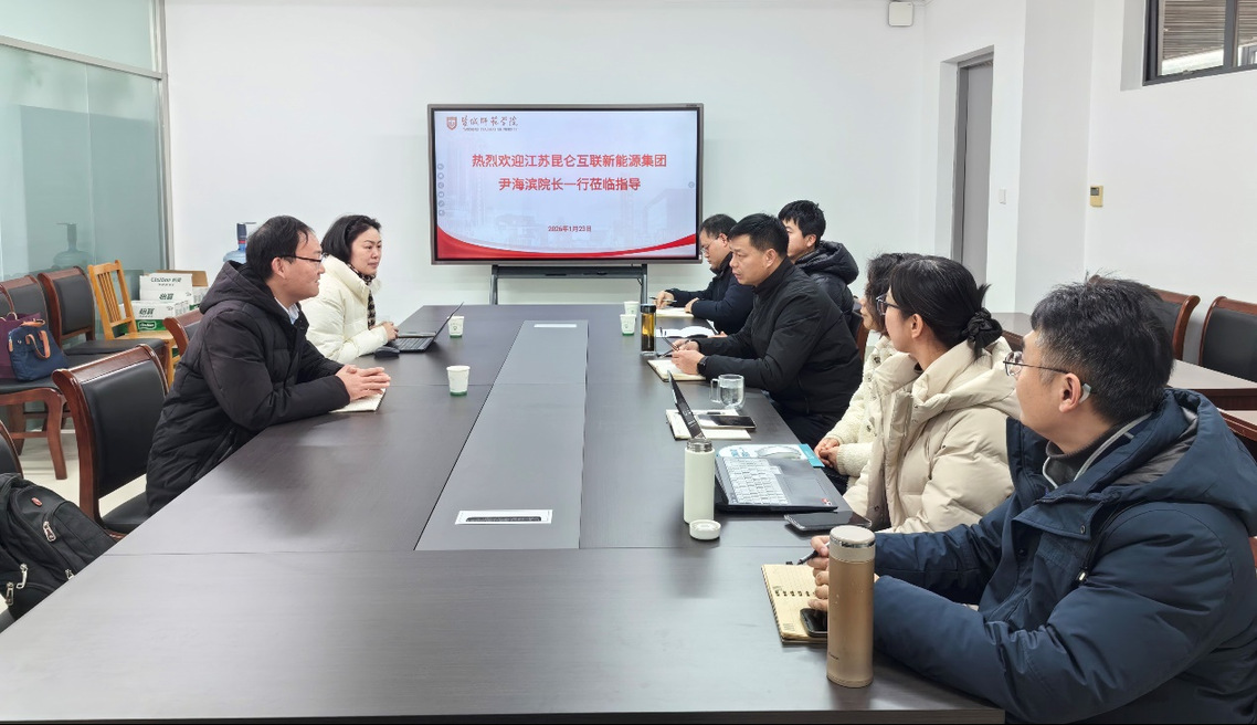 2026年1月23日,江苏昆仑互联新能源集团有限公司副总裁兼数字能源技术研究院院长尹海滨一行到访我院,学院党委副书记、院长黄兵、副院长邢蓉及教师代表热情接待并举行座谈。双方围绕高性能固态电池研发、人工智能+新能源及产学研协同创新等主题开展合作交流,就人才培养、科技攻关、产业赋能等方面展开深入交流,共同探讨校企合作新机制、新模式。座谈会上,黄兵院长首先对尹海滨一行的到来表示欢迎,并介绍了学院在绿色低碳领域的...