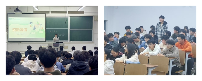 宣讲环节中,主持人解读《国家教育考试违规处理办法》《学生资助管理办法》等制度,结合案例剖析考试作弊处分、虚假资助申请追责等情形,让“诚信”成为具体行为准则。同时详解国家奖助学金、助学贷款的申请条件与流程,强调信息不实的法律及信用后果,引导受助学生感恩践行诚信,将诚信内化于心、外化于行。随后的诚信知识抢答环节点燃现场气氛,题目涵盖诚信规范、考试纪律及资助政策,同学们踊跃参与,强化了诚信认知。
