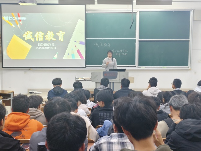 10月28日,为引导2025级新生树立“诚信立身、修德笃行”价值观念,绿色低碳学院于公共教学楼开展2025级新生“筑牢诚信基石,涵养优良学风”专题教育活动。