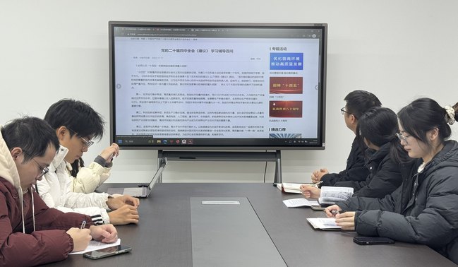 在专题学习环节,谢开心同志领学《习近平谈治国理政》第五卷第四篇章,引导全体党员切实做到学思用贯通、知信行统一;孙畅同志领学省委书记信长星系列重要讲话精神,结合我省“十五五”发展专题调研成果,让党员们深刻领会省委贯彻落实中央部署的实践路径与工作要求。随后,全体党员共同观看纪录片《八秩荣光|每闻潮声思宋公》,通过影像回望盐阜大地“宋公堤”的修筑历程,深切感悟共产党人在艰难岁月中心系百姓、攻坚克难的崇高风范,进一步坚定为民初心与奋斗信念。