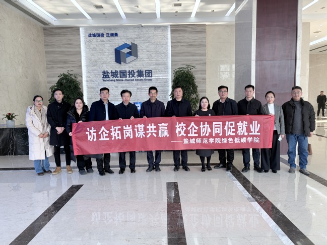 为深入贯彻教育部“优企引才”工作部署,落实学校“寒假促就业暖心行动”要求,2月4日下午,我校副校长徐华、绿色低碳学院党委书记徐晓亮、院长黄兵等一行,赴盐城国投集团开展访企拓岗专项交流,以实际行动为2026届毕业生高质量就业赋能。盐城国投集团党委副书记、总经理仲明,盐城国能公司副总经理蒋凤霞、葛宝爽等企业领导热情接待了来访人员。