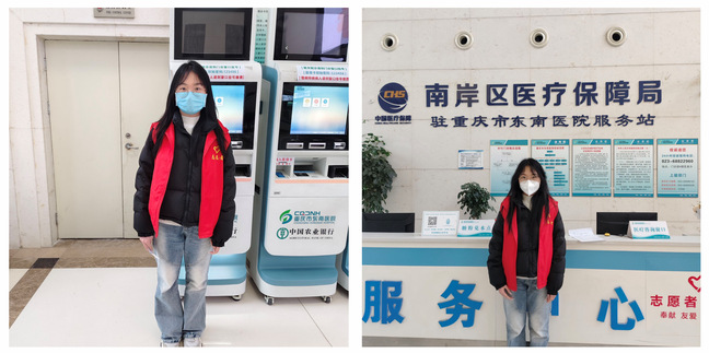 在重庆市南岸区东南医院,241班同学孙佳梦积极投身医院志愿服务,以青春力量助力医疗服务。她在南岸区医疗保障局驻东南医院服务站协助开展医保咨询、导诊引导等工作,为患者及家属提供路线指引、医保政策解读和智能设备操作指导,帮助老年患者和不熟悉流程的群众顺利完成挂号、缴费等流程,缓解了就医高峰时段秩序压力。同时,她向患者及家属普及健康知识,用耐心与细心缓解了患者的焦虑情绪。在服务中,她深刻体会到医疗工作的严谨与责任,践行了青年学子的使命担当。