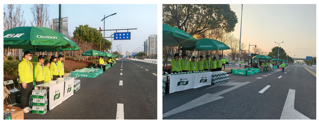 抵达赛道服务点后,志愿者们迅速投入紧张有序的准备工作。大家分工协作,搬运物资、摆放桌椅、精心准备补给品,各项工作有条不紊。在大家的共同努力下,一个个整洁、规范的服务点迅速搭建完成,为参赛选手做好了充分保障。