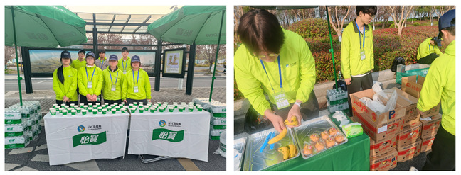 随着发令枪响,选手们如潮水般涌来,志愿者们守候在补给站旁,手持水杯,为每一位经过的选手及时递上补给。他们面带微笑,热情助威,用一声声“加油”为选手们注入前行的动力。在志愿者的悉心服务下,选手们得以有效补充能量,继续奋勇向前。