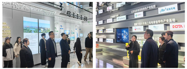 在长三角一体化产业发展基地新能源科创园展厅,同学们通过沙盘模型与实时数据大屏,直观感知规划面积596平方公里的产业集群宏图。从海上风电整机装备到光伏组件智造,金风科技、天合光能等链主企业的布局清晰展现了“研发—制造—运维”的全链条生态。调研中,园区负责人特别指出,随着深海风电与智慧运维的推进,具备能源工程与环境科学交叉背景的复合型人才缺口日益凸显,这让绿碳学子对自身专业价值与能力进阶路径有了更为具象的思考。